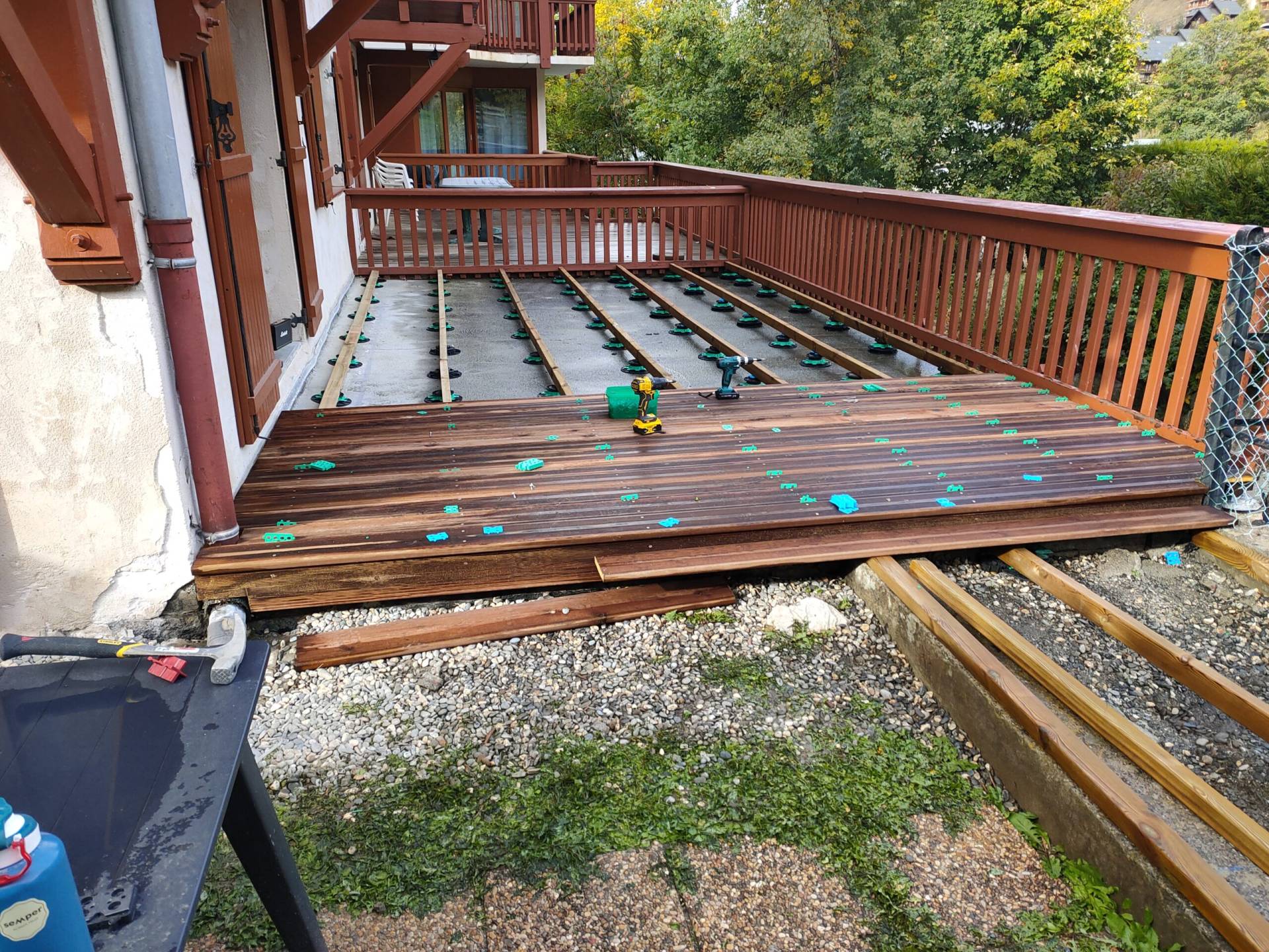 Construction de terrasse en bois en montagne superbe ! Très esthétique et conforme au thème du paysage qui l’entoure .