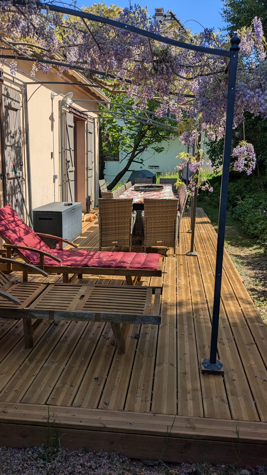 Photos du chantier de construction d’une terrasse en bois sur sol meuble à Rouen – Aménagement extérieur sur mesure